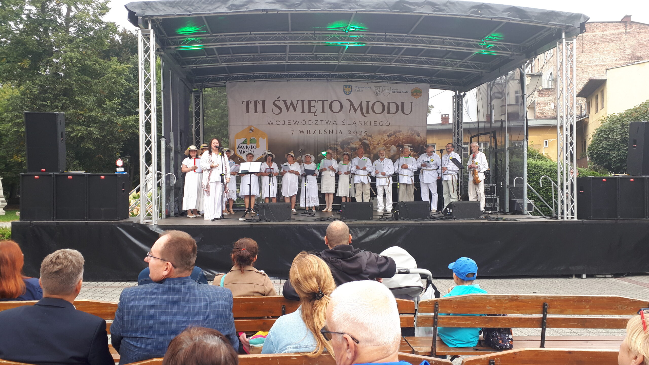 O 14:15 zaplanowano przeprowadzenie na scenie konkursu przebrań pszczelarskich, ao godz. 15:00 wystąpi Kapela PoPieronie,