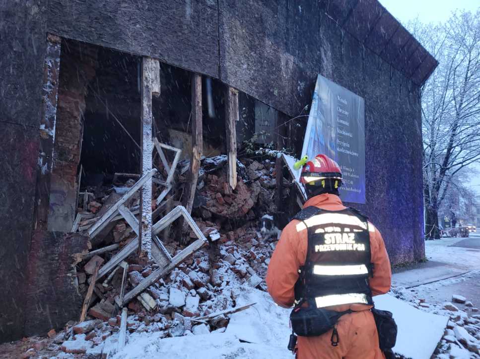 Na miejsce akcji ściągnięto również dwa psy. Ich zadaniem była lokalizacja osób poszkodowanych, które mogły znajdować się pod gruzami. Na szczęście, taką ewentualność, dzięki psom, już wykluczono. W kamienicy nie było ludzi.
