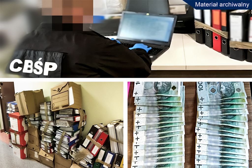 Mundurowi przeszukali miejsca zamieszkania oraz nieruchomości użytkowane przez podejrzanych, przejmując dokumentację i sprzęt elektroniczny. Zabezpieczone rzeczy będą analizowane przez śledczych pod kątem dowodowym.
