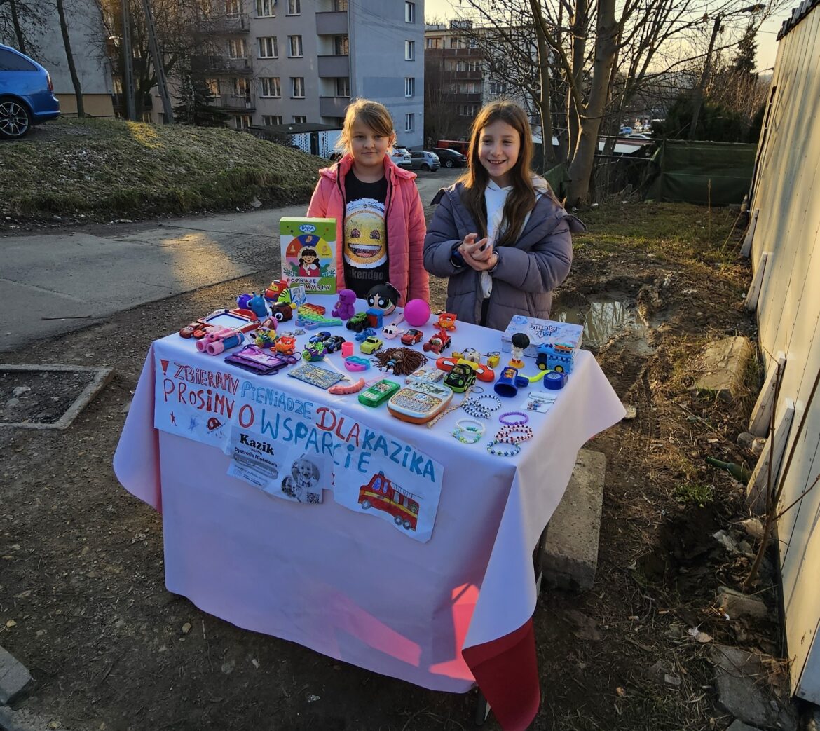 Wzruszająca inicjatywa dwóch uczennic z Bielska-Białej pokazuje, że pomagać można w każdym wieku. We wtorek po południu nasz słuchacz, pan Bartosz, przesłał do Radia Bielsko zdjęcie swojej córki Poli i jej koleżanki Tosi, które na jednym z osiedli zorganizowały wyprzedaż zabawek. Cel jest jeden — wesprzeć leczenie 3-letniego Kazika Sromka z Bystrej.