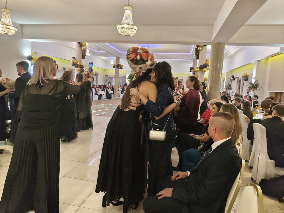 Po oficjalnych wystąpieniach rozpoczęła się zabawa. Parkiet szybko się zapełnił, a DJ zadbał o muzykę łączącą najnowsze hity z klasykami, przy których równie chętnie bawili się uczniowie, jak i grono pedagogiczne. Nauczyciele pokazali, że potrafią dotrzymać kroku swoim wychowankom, a wspólne tańce stały się okazją do integracji w mniej formalnej atmosferze.