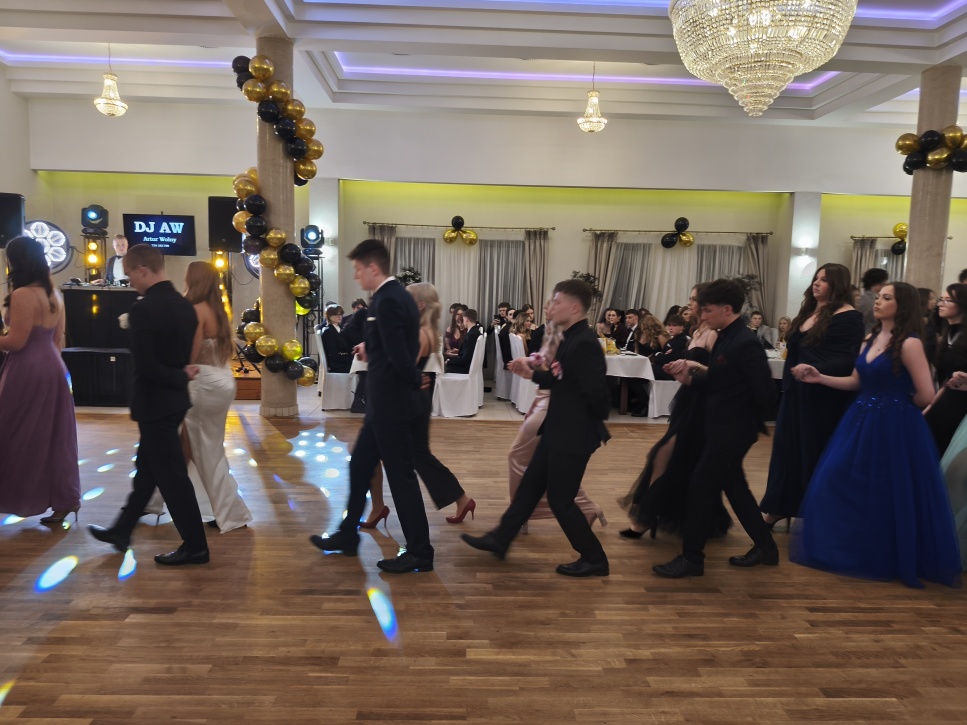 Tradycyjnie bal rozpoczął się od poloneza. W pierwszej parze zatańczyła pani dyrektor, Dorota Siwik. Uczniowie, w odświętnych strojach, z dumą prezentowali układ choreograficzny, nad którym pracowali przez ostatnie tygodnie. Na parkiecie nie brakowało skupienia, ale i uśmiechów – widać było, że to dla nich symboliczny moment wejścia w dorosłość.