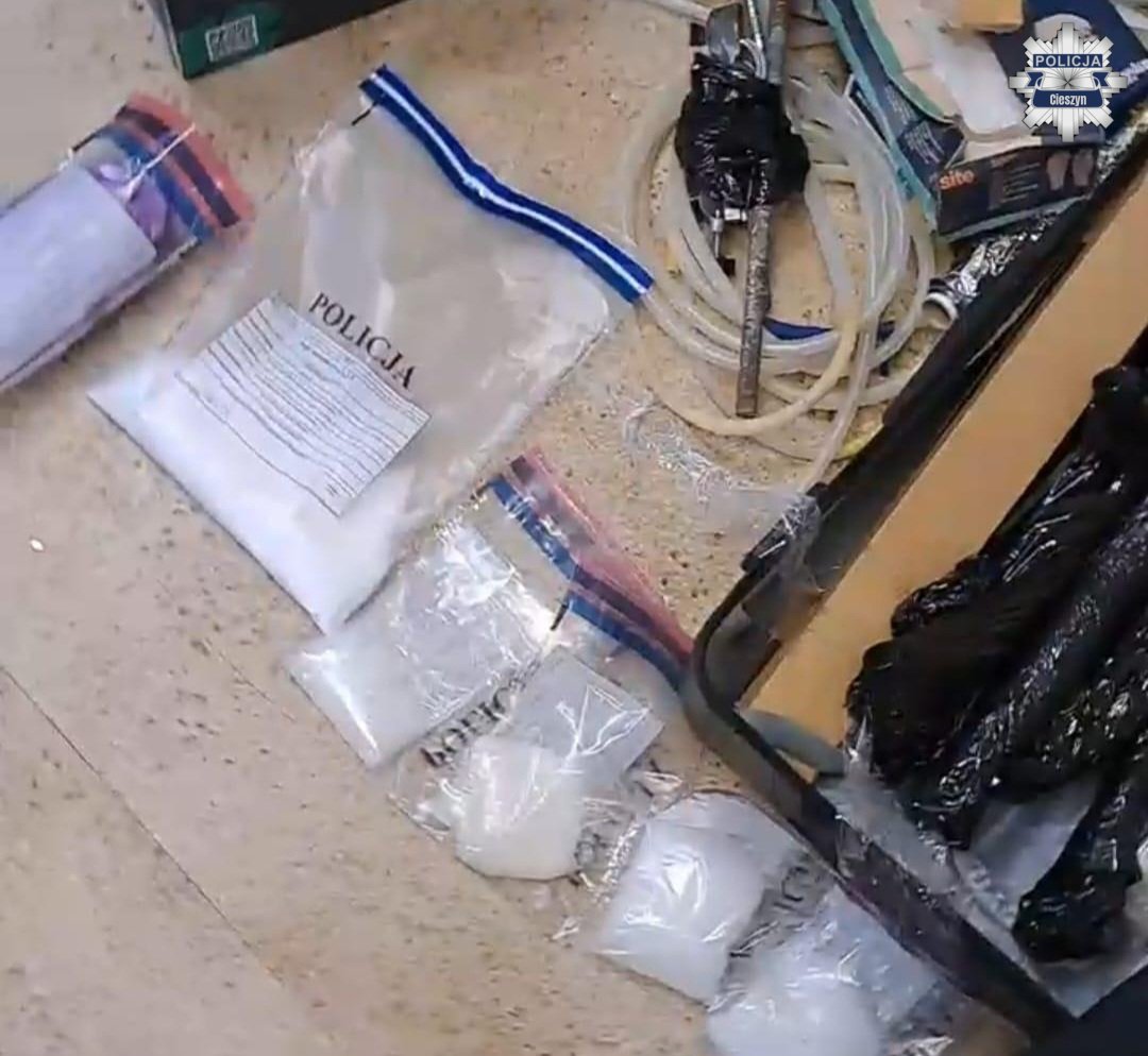 W trakcie przeszukania kryminalni zabezpieczyli ponad 670 gramów narkotyków – głównie metamfetaminy, a także narzędzia i komponenty chemiczne służące do jej produkcji. W mieszkaniu i przy zatrzymanych znaleziono również ponad 1600 euro i 85 tysięcy koron czeskich. Całość została zabezpieczona jako dowód w sprawie.