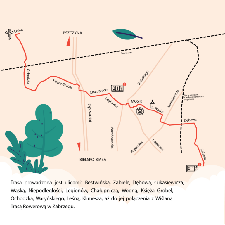Jednym z najważniejszych elementów inwestycji jest połączenie nowej trasy z Wiślaną Trasą Rowerową w Zabrzegu. To jeden z istotniejszych szlaków rowerowych w tej części Polski, dlatego nowe rozwiązanie może mieć znaczenie nie tylko dla mieszkańców Czechowic-Dziedzic, ale także dla osób korzystających z regionalnej infrastruktury rowerowej.
