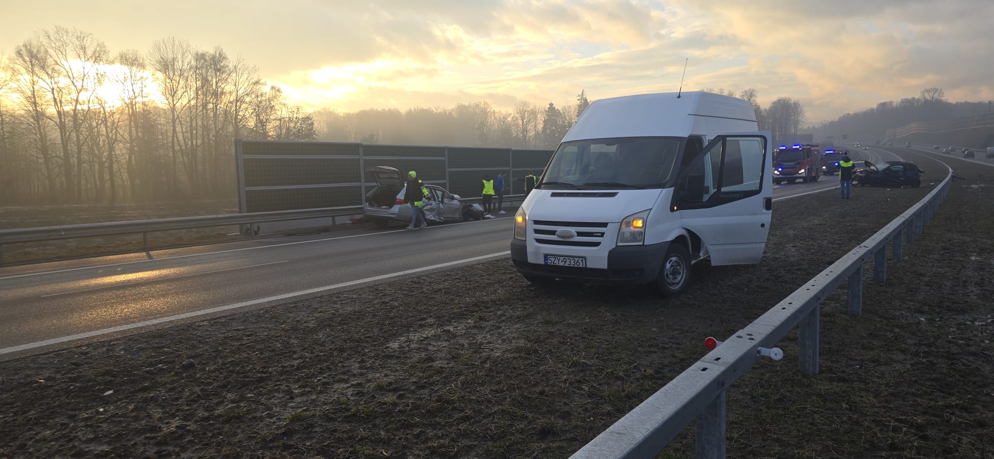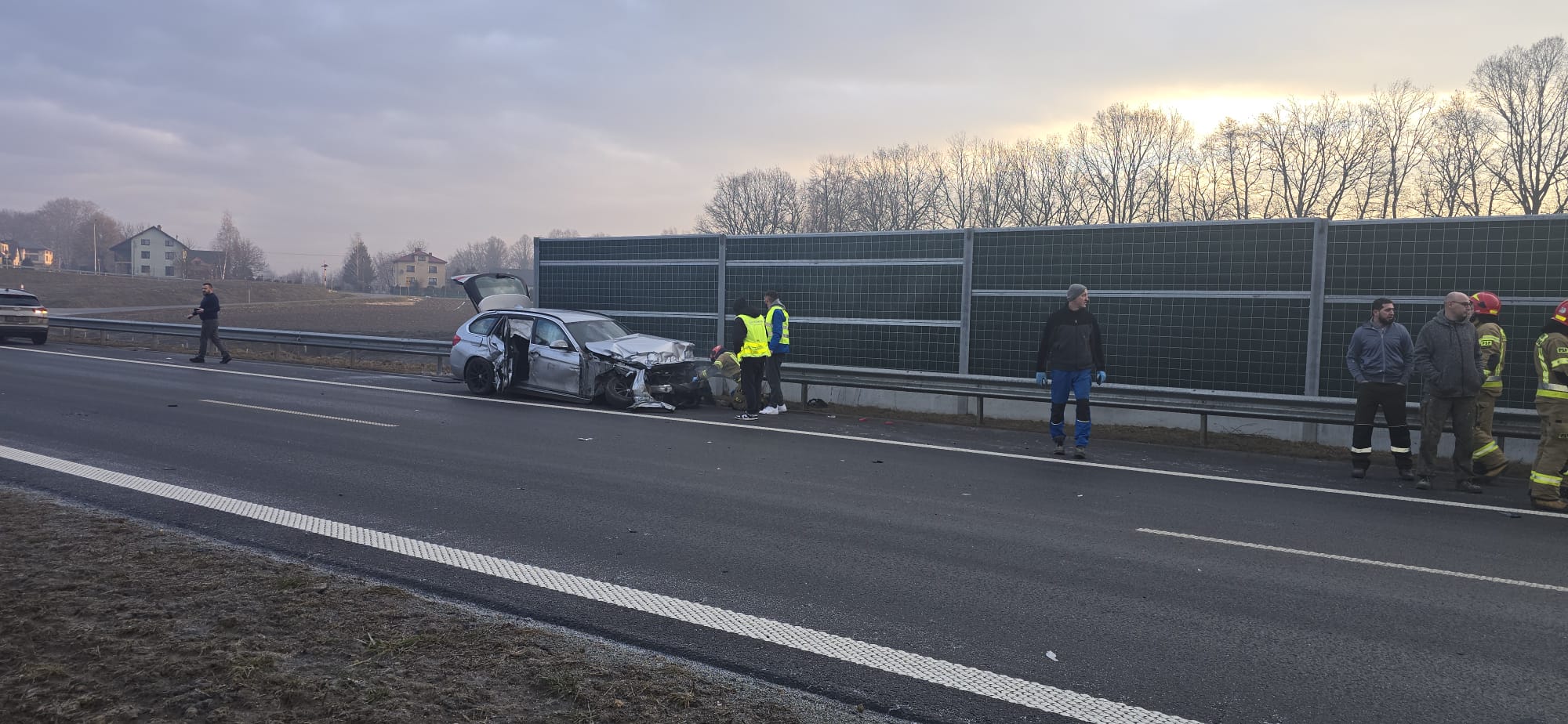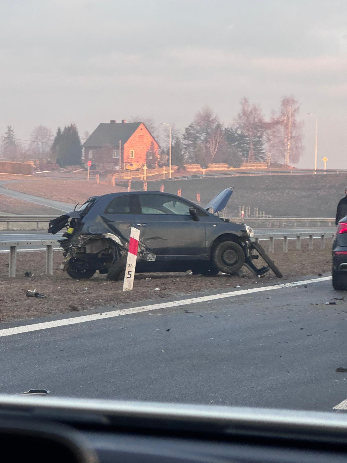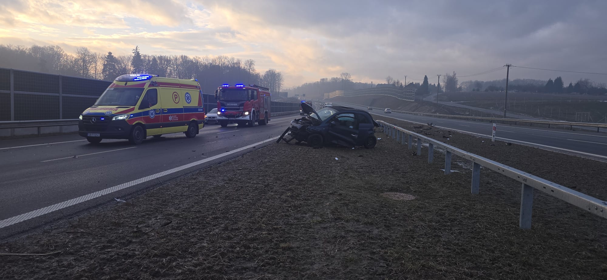 Rejon Dankowic i Starej Wsi w gminie Wilamowice, trasa S1. O poranku kierująca Fiatem, poruszająca się prawmy pasem wpadła tam w poślizg, zjechała na lewy pas i i zderzyła się z Bmw. Fiat – siłą rozpędu – uderzył jeszcze w barierki energochłonne. Oba samochody są mocno porozbijane. Kierująca z Fiata trafiła do szpitala na badania, ale ostatecznie okazało się nic poważnego nikomu się nie stało.