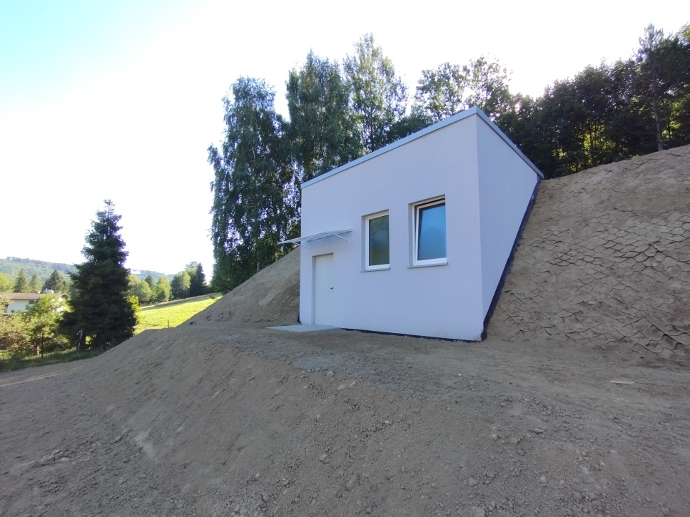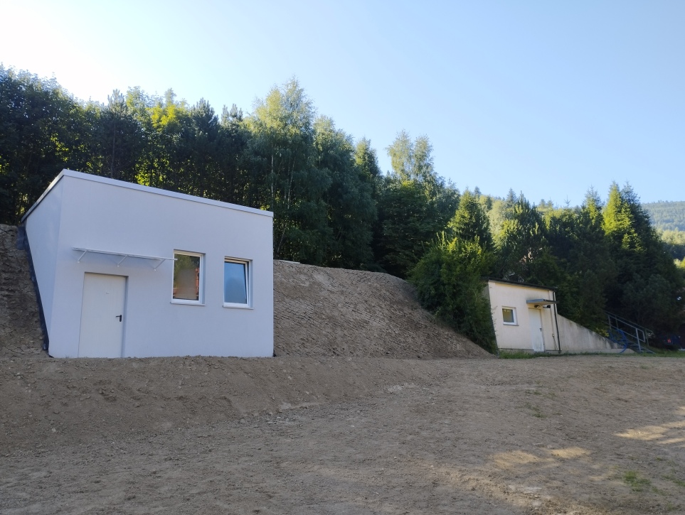 Obiekt został odpowiednio zaizolowany, obsypany gruntem i zabezpieczony, a jego otoczenie uporządkowano i obsiano trawą. Wejście do komory zasuw zaprojektowano z poziomu terenu, co ułatwia obsługę i przeglądy techniczne.