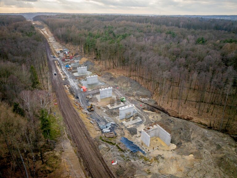 Najbardziej widowiskowym elementem prac jest budowa nowego mostu kolejowego w Zebrzydowicach. Obiekt ma około 600 metrów długości i będzie jednym z kluczowych punktów modernizowanej trasy. Jak informuje PKP PLK, gotowe są już niemal wszystkie podpory i przyczółki, a obecnie montowane są przęsła konstrukcji. W kolejnym etapie na moście pojawią się tory i sieć trakcyjna.