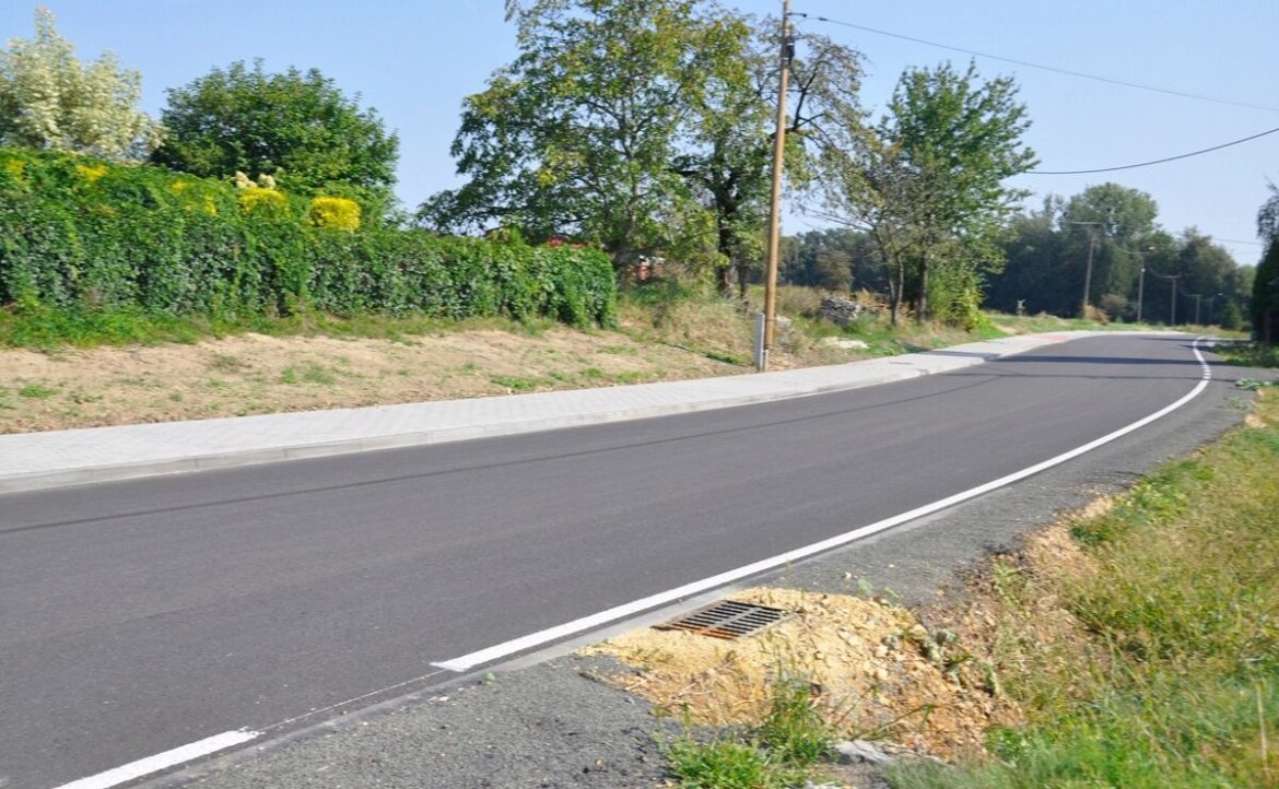 Wraz z budową chodnika na długości ponad 240m wykonano m.in.: rozebranie istniejących przepustów, budowę kanalizacji deszczowej, poszerzenie jezdni oraz zamontowanie nowej wiaty przystankowej.