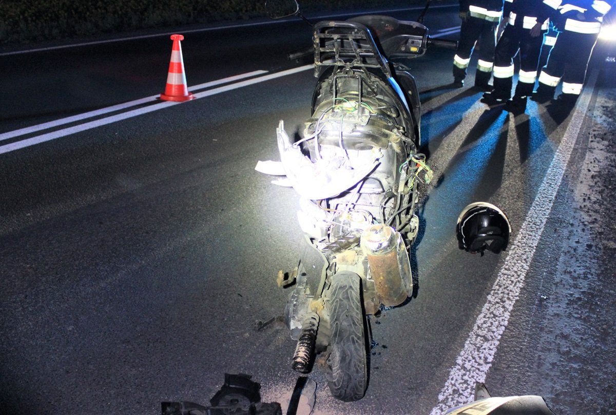 Poważnych obrażeń ciała doznał 38-letni mieszkaniec gminy Kęty, po tym, jak na tył jego skutera najechał kierowca samochodu osobowego.