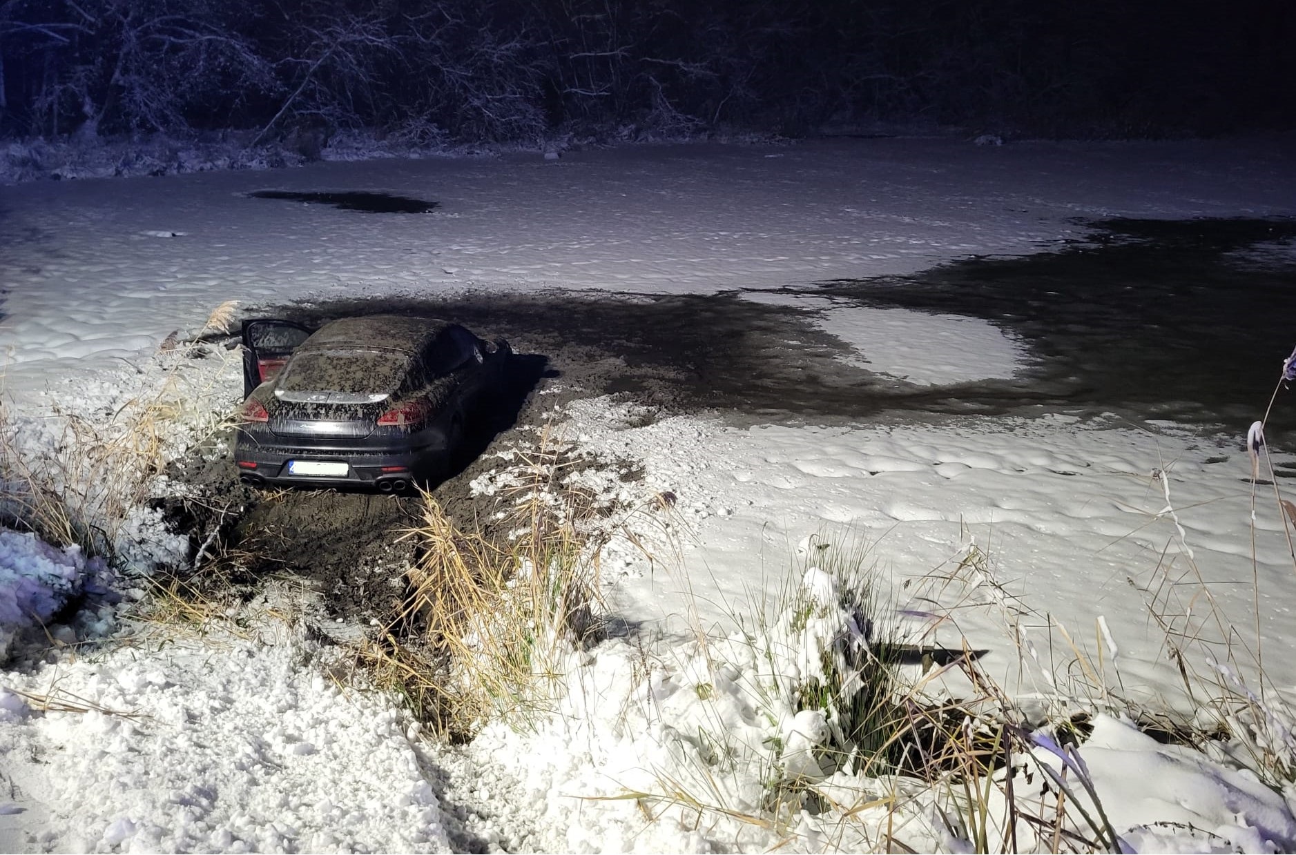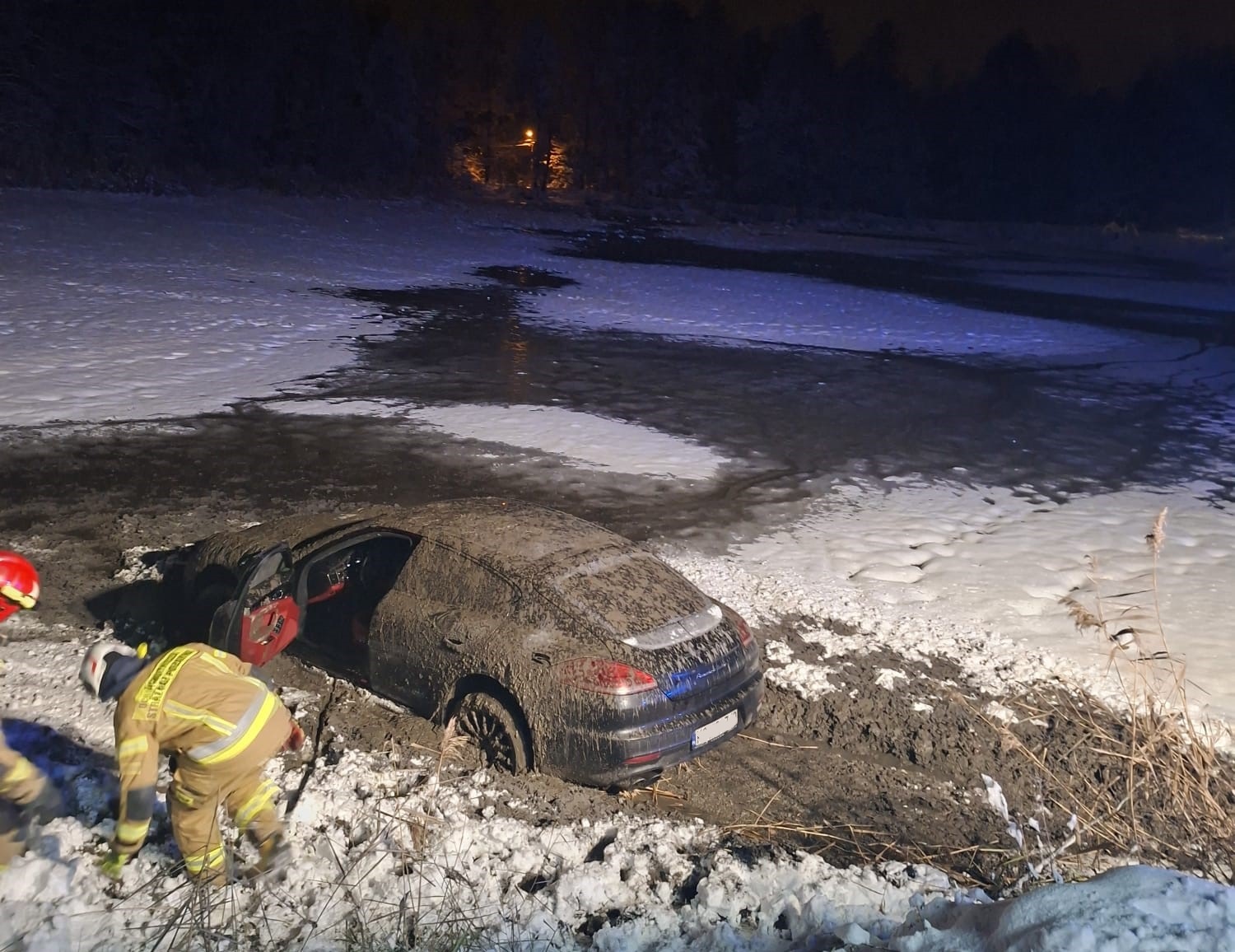 Powiat oświęcimski. Porsche wpadło do stawu, a skoda spadła z mostu do rzeki. Do obu niebezpiecznych zdarzeń doszło wczoraj w godzinnym odstępie.
