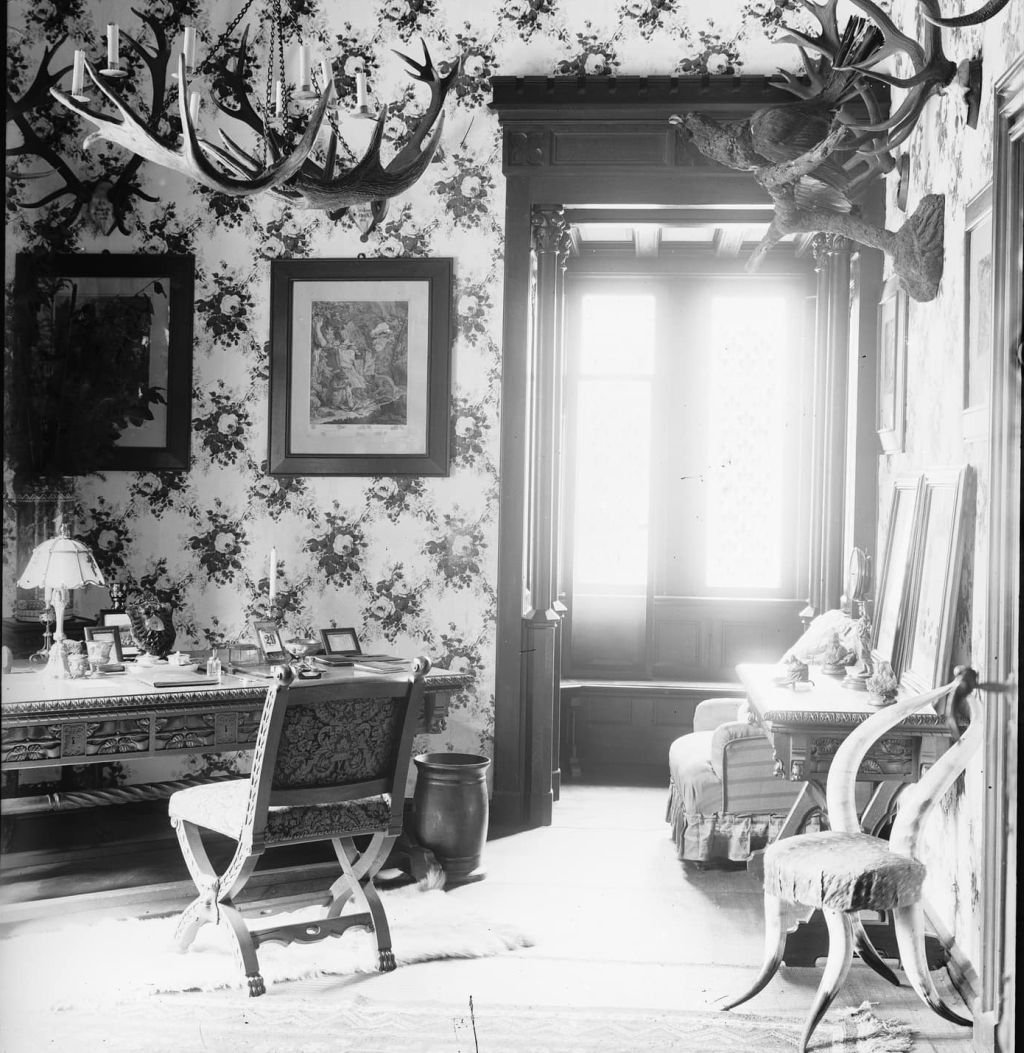 W trakcie prowadzonych w zabytkowym zameczku szeroko zakrojonych, kompleksowych prac konserwatorskich, w jednym z pomieszczeń na parterze (w którym kiedyś znajdował się gabinet cesarza, a w czasach funkcjonowania hotelu – recepcja) odkryto na ścianie, pod drewnianymi ościeżnicami otworu drzwiowego, fragmenty tapety z motywem kwiatowym.