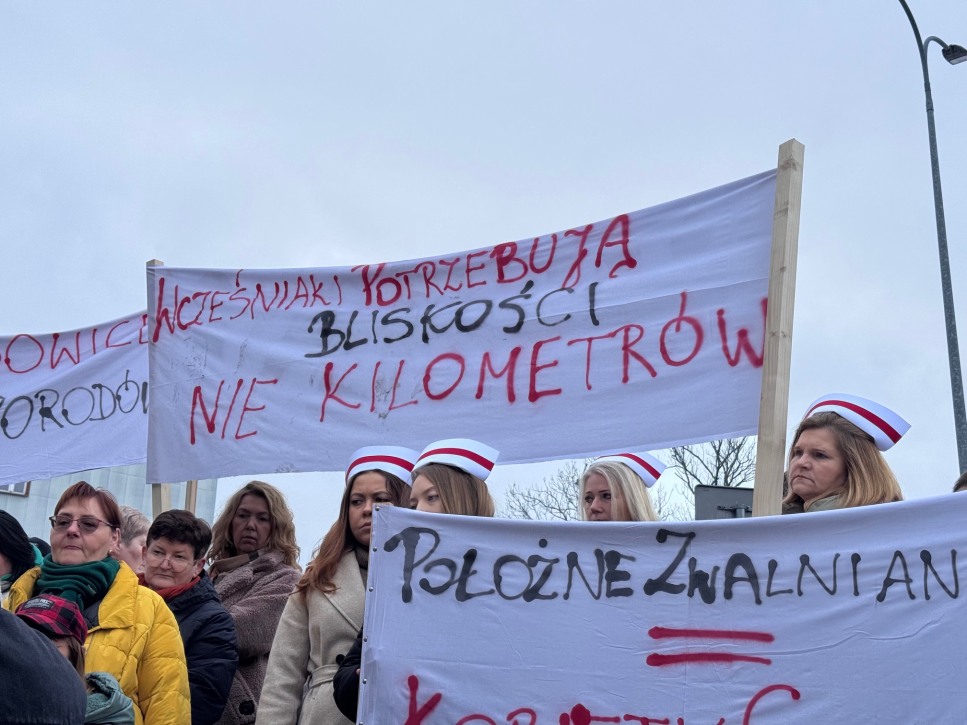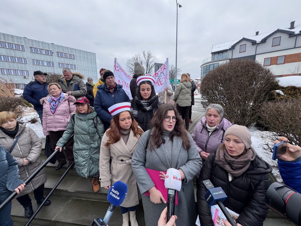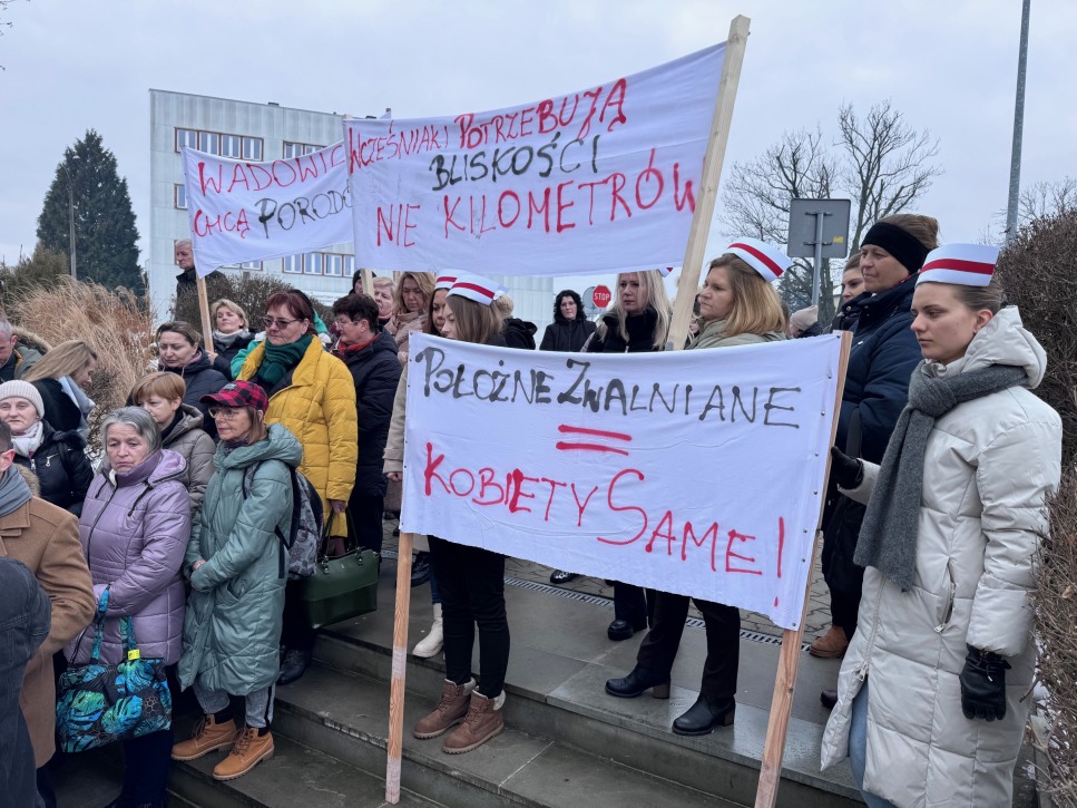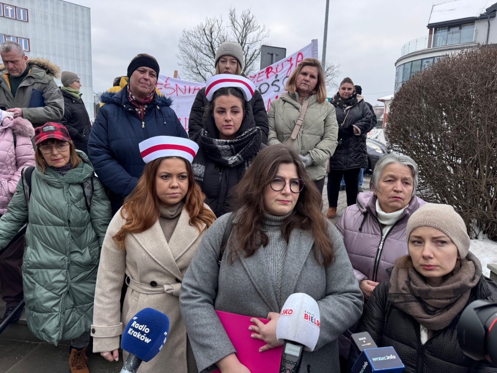 Pacjentki, pielęgniarki i lekarze wyszli dziś przed starostwo powiatowe w Wadowicach. Protest dotyczył planowanego od 1 lutego 2026 roku zawieszenia Oddziału Ginekologiczno-Położniczego oraz Oddziału Noworodków i Wcześniaków w miejscowym szpitalu.