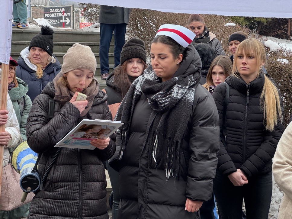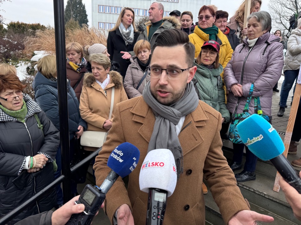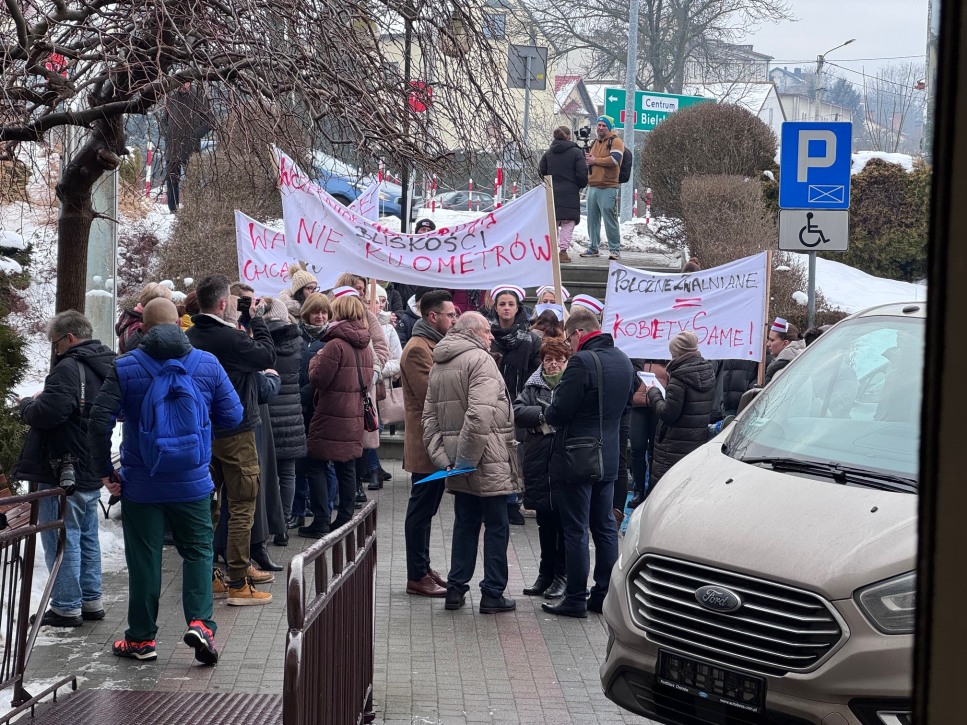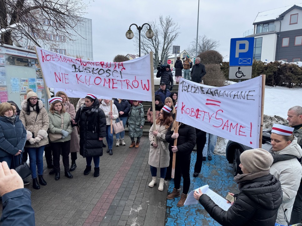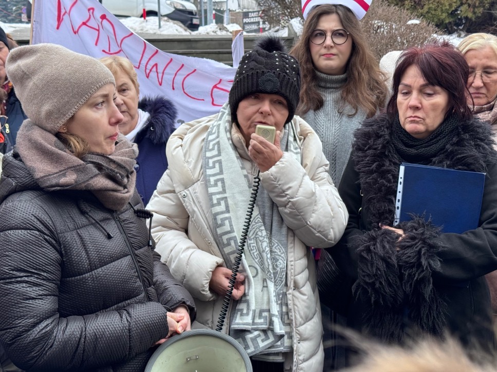 Pacjentki, pielęgniarki i lekarze wyszli dziś przed starostwo powiatowe w Wadowicach. Protest dotyczył planowanego od 1 lutego 2026 roku zawieszenia Oddziału Ginekologiczno-Położniczego oraz Oddziału Noworodków i Wcześniaków w miejscowym szpitalu.