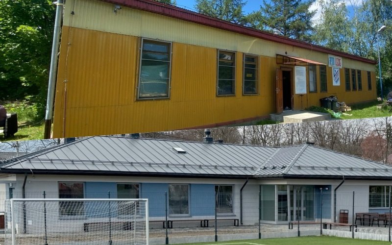 Trzy szatnie, sanitariaty, pokój sędziów, biuro, magazyn, aneks kuchenny a nawet sala narad i boisko ze sztucznym oświetleniem!