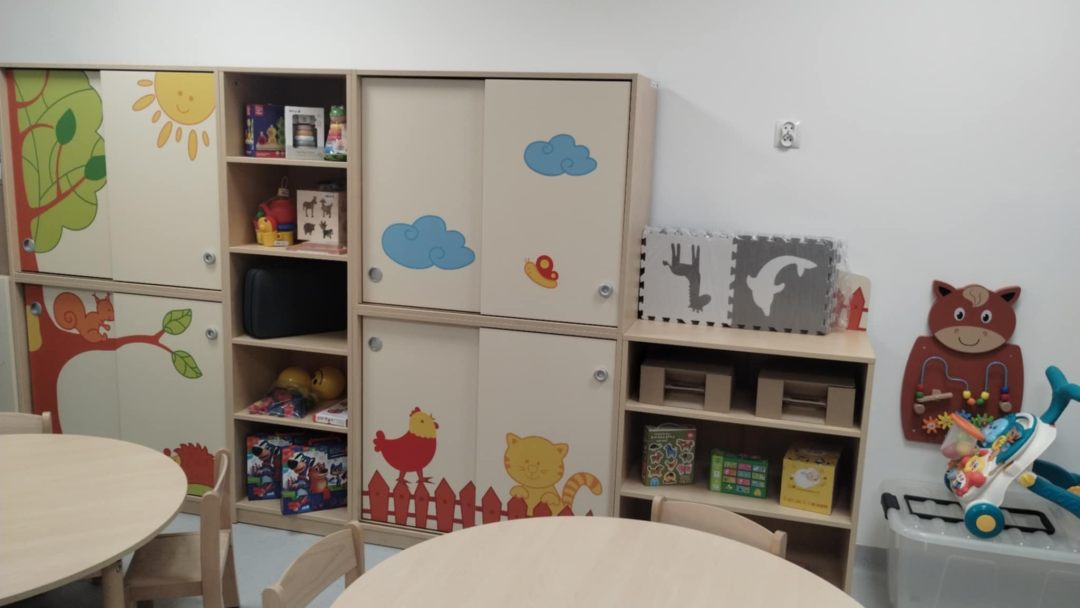 Gminny klub dziecięcy został utworzony w zaadaptowanych pomieszczeniach Zespołu Szkolno-Przedszkolnego w Pewli Małej. Przestrzeń została odpowiednio przystosowana do potrzeb najmłodszych, z uwzględnieniem bezpieczeństwa, komfortu oraz wymogów opieki nad dziećmi w wieku żłobkowym.
