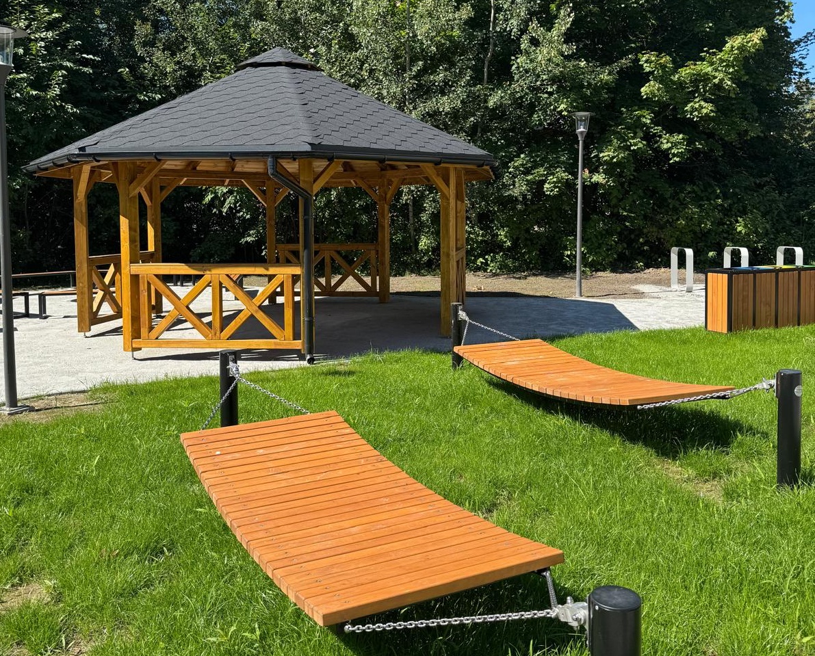 Nowa strefa wypoczynku została zaprojektowana z myślą o relaksie na świeżym powietrzu. Na miejscu znajdują się zadaszone hamaki, stanowiska do grillowania oraz infrastruktura zapewniająca bezpieczeństwo – całość jest monitorowana.