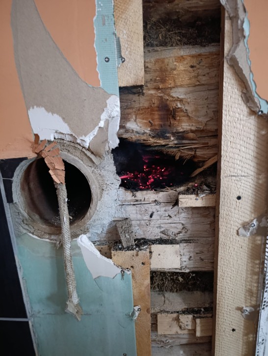 Strażacy przystąpili do rozbiórki drewnianej ściany, a następnie skutecznie dogasili zarzewie ognia. Po zakończeniu akcji miejsce zostało dokładnie sprawdzone przy użyciu kamery termowizyjnej.