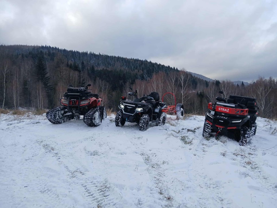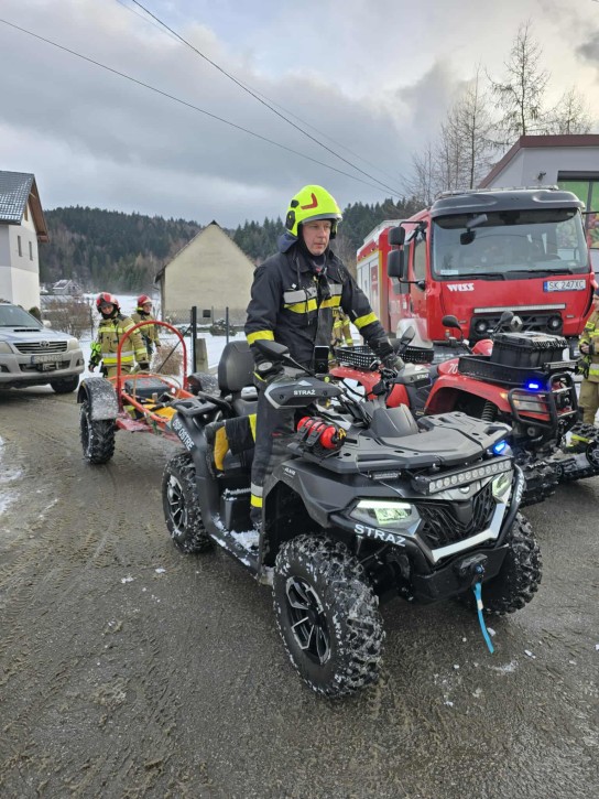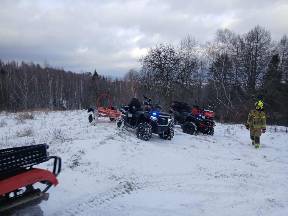 Ze względu na trudno dostępny teren leśny, Kierujący Działaniami Ratowniczymi (KDR) zdecydował o zadysponowaniu quadów w celu przetransportowania ratowników oraz niezbędnego sprzętu. Na miejsce przybył również quad z OSP Pietrzykowice.
