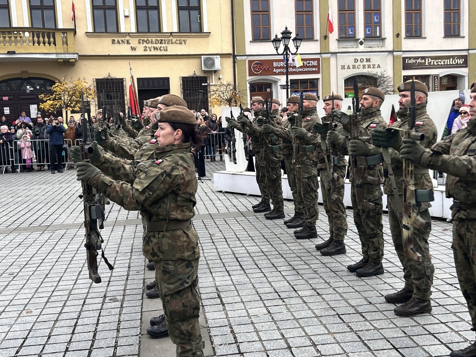 Wyjątkowym punktem obchodów było ślubowanie kadetów z Zespołu Szkół Agrotechnicznych i Ogólnokształcących im. Józefa Piłsudskiego w Żywcu. Uczniowie oddziałów przygotowania wojskowego i branżowych oddziałów wojskowych złożyli uroczyste ślubowanie na żywieckim rynku – w obecności kompanii honorowej Wojska Polskiego.