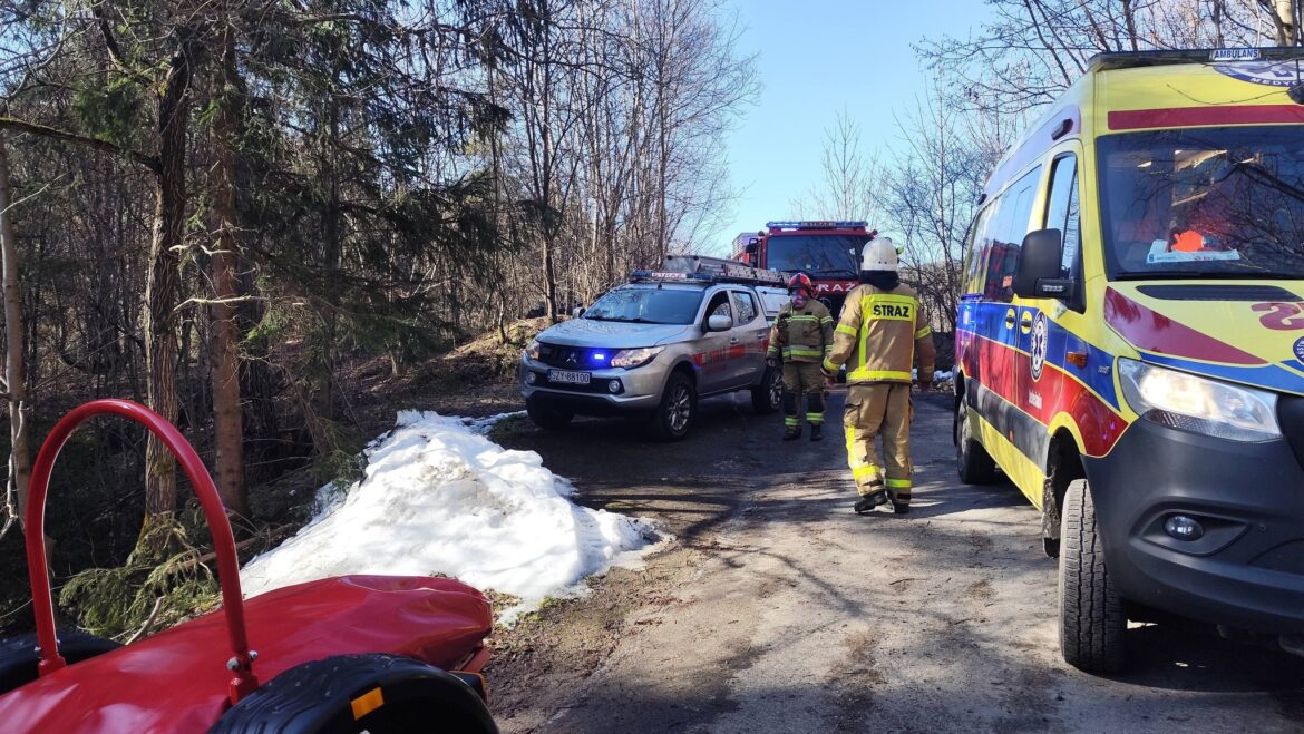 Dzisiaj około godziny 12:30 strażacy zostali zadysponowani przez Stanowisko Kierowania Komendanta Powiatowego w Żywcu do wypadku z udziałem motocyklisty. Do zdarzenia doszło w trudno dostępnym terenie leśnym przy ul. Przyborowiec w Przyborowie.