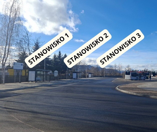 Stanowisko numer 1 znajduje się przy wiacie najbliżej budynku dworca. Przewoźnik apeluje do podróżnych, aby przed odjazdem sprawdzali informacje przy tablicach z rozkładami.