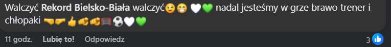 To był prawdziwy pokaz siły Rekordu Bielsko-Biała. Podopieczni Piotra Tworka od samego początku spotkania narzucili swoje warunki, czego najlepszym przykładem była szybko zdobyta przez Wojciecha Łaskiego bramka. Niespełna dwie minuty wystarczyły, by przyjezdni wysunęli się na prowadzenie. Później było jeszcze lepiej. Przed przerwą dwukrotnie trafił Jan Ciućka, a po zmianie stron swoje trafienie dołożył jeszcze Mateusz Klichowicz. Ostatecznie Bielszczanie zwyciężyli to spotkanie aż 4:0. Kibice w sekcji komentarzy nie kryli swojej radości, zaznaczali jednak, że liczą na powtórkę w nadchodzącym domowym starciu z Hutnikiem Kraków.