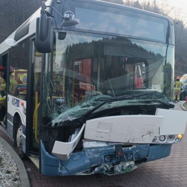 Do zderzenia samochodu osobowego z autobusem doszło po godz. 7.00 w Wiśle, w okolicach zjazdu na rondzie do Jawornika.